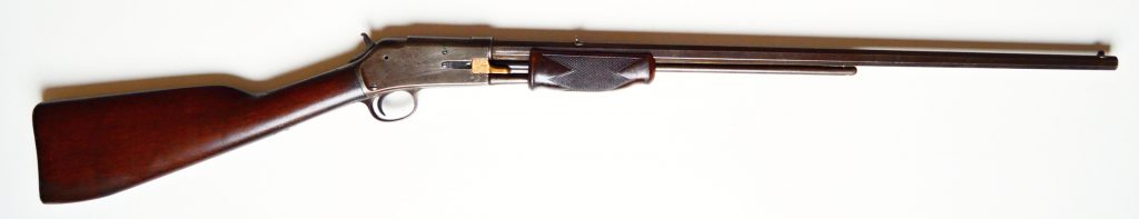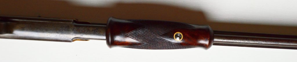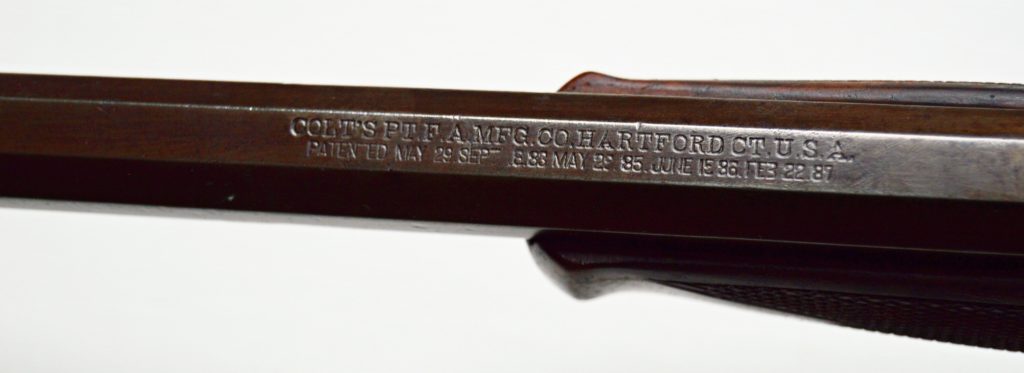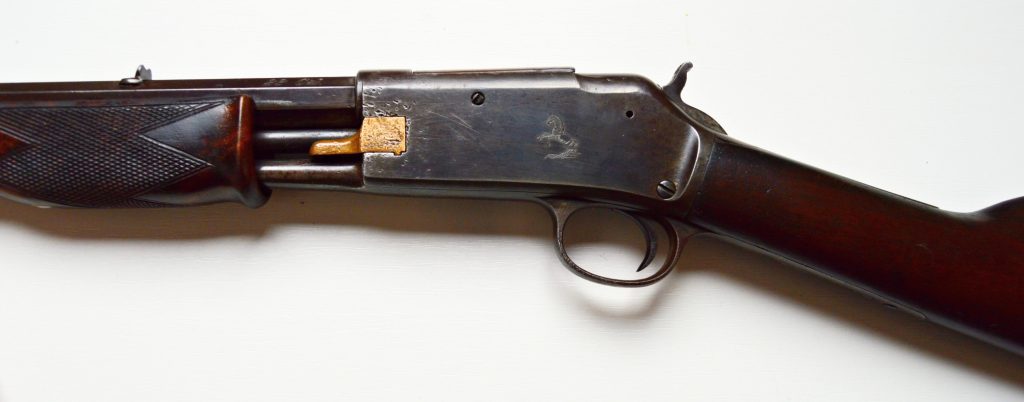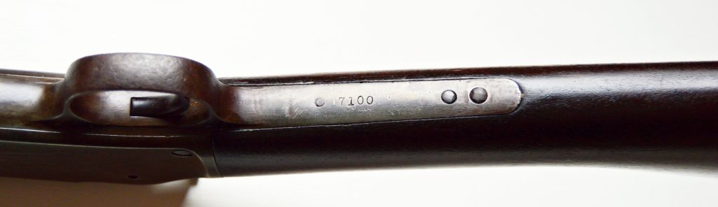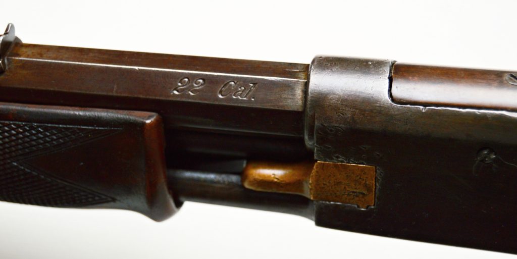 Zbraň je funkční – střelbyschopná, vyhazuje nábojnice, signatury jsou všechny pěkně čitelné, včetně loga hříběte na boku rámu. Kovové části zbraně mají ostré hrany, Mosazný podavač je otlučený, ale to je bohužel běžné.. Na závěru zbytky originálního brynýru, závěr je čistý, celkový stav zbraně je pěkný. Pažba a pohyblivé střenky-předpažbí jsou pěkné. Vývrt hlavně je ucházející, drážky viditelné, ale jsou patrné stopy po černém prachu. Délka hlavně 24″. Mířidla originální a ve 100% stavu. Hlaveň je octagonal.