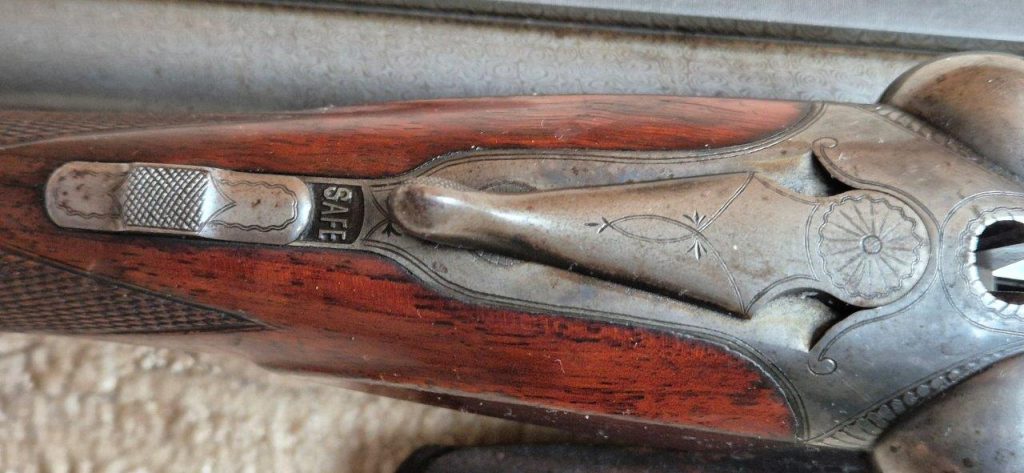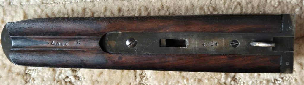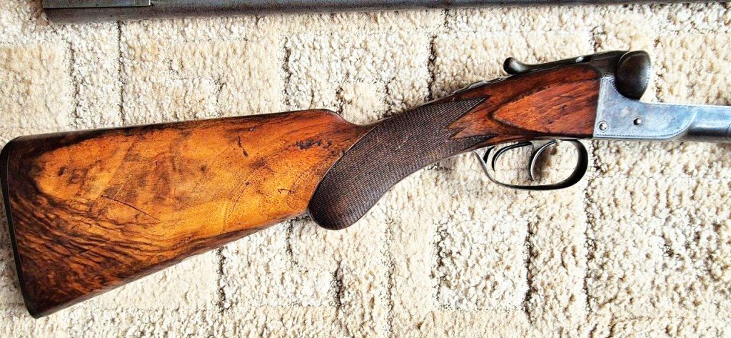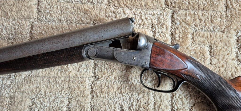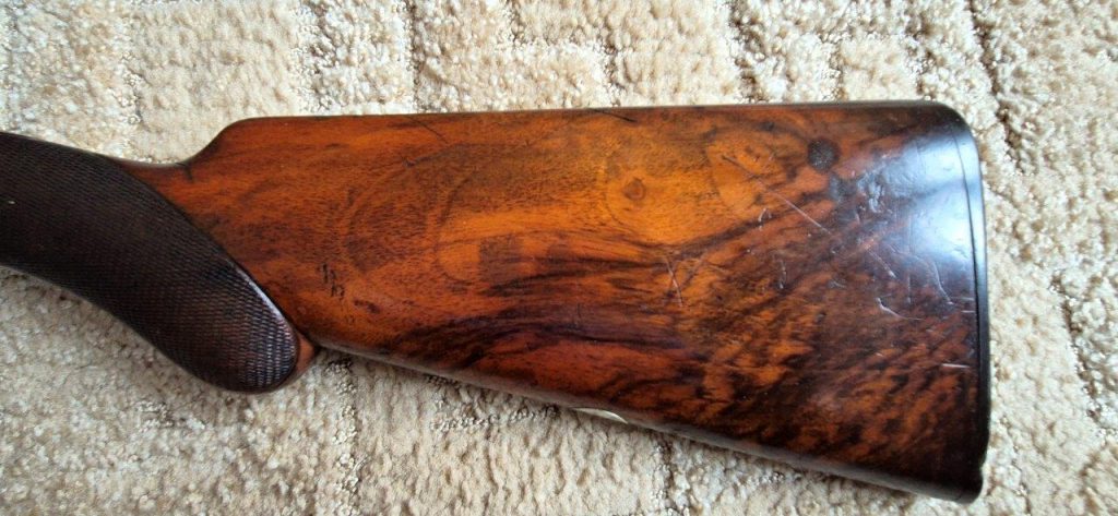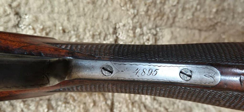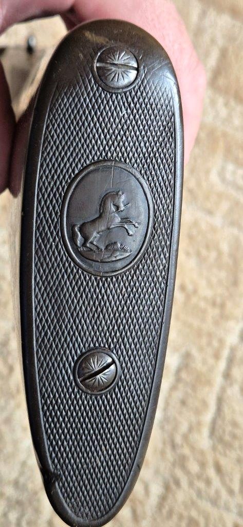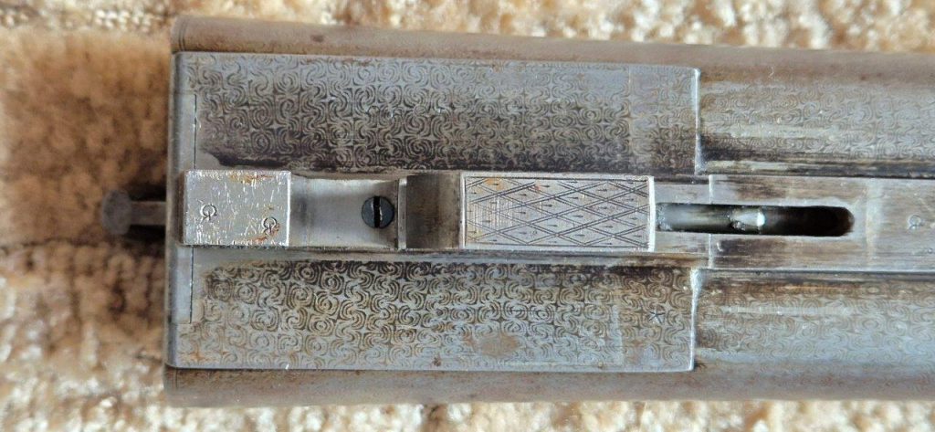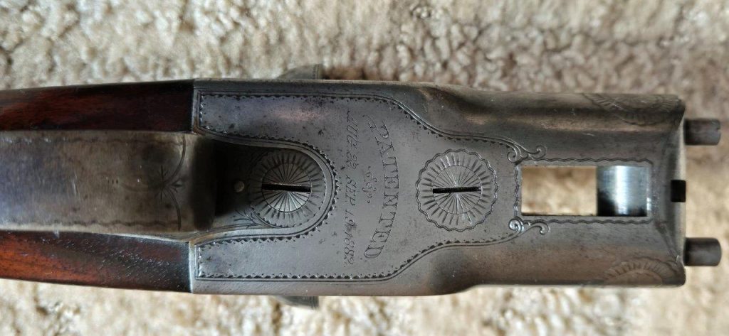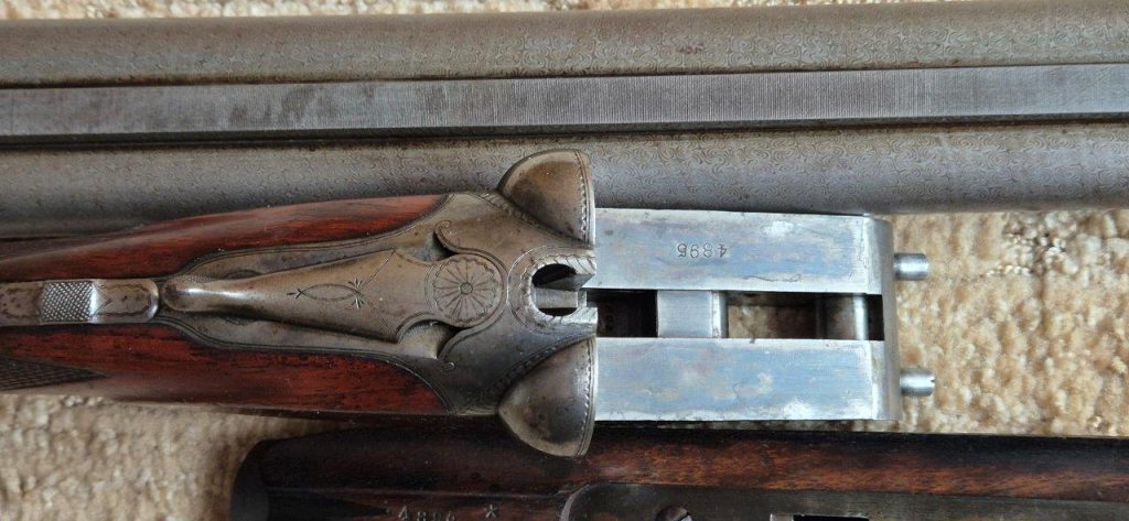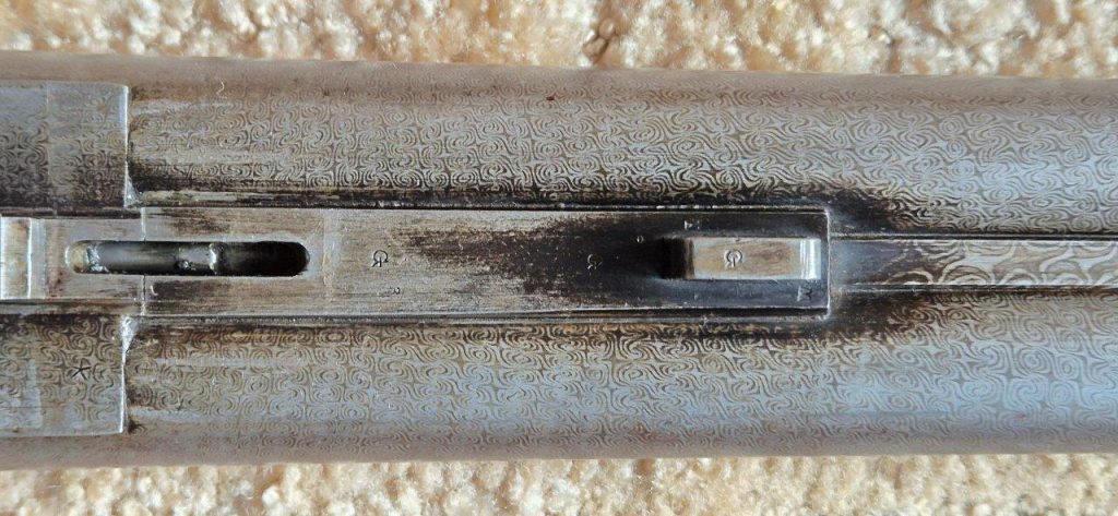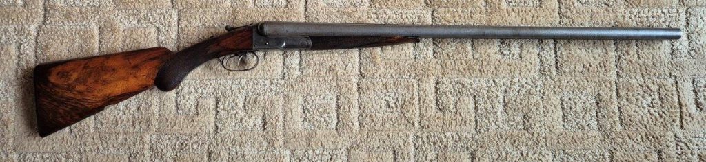 To nejlepší od Colta ! Velmi vzácná a ceněná Coltova broková hammerless, Model 1883, dvojka v kalibru 10 s těžkým rámem. Hlaveň dlouhá 30″. Obě brokové hlavně, včetně komor jsou zrcadlově čisté, de facto nestřílené – jako nové! Mechanicky plně funkční. Uzamčení hlavní pevné, absolutně bez vůlí. Jednotlivé části zbraně jsou sčíslované. Signatura na hlavni, damašek, patenty a rytiny na baskuli jsou zřetelně viditelné, 100% čitelné a čisté. Botka s logem hříběte je originál z tvrzené pryže a nepoškozená. Pažba originál ořechová kořenice. Pojistka spouště, vyhazovač nábojnic, vše bezchybně funkční. Zbraň se vyráběla v letech 1883 – 1895 a vyrobeno bylo pouze 7366 kusů, z toho jen cca 1900 kusů této specifikace (cal.10, rytiny, damašek, velký rám. atd)
