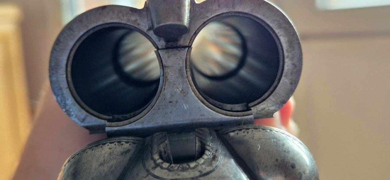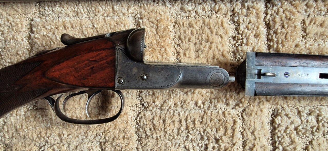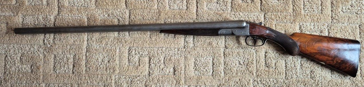 To nejlepší od Colta ! Velmi vzácná a ceněná Coltova broková hammerless, Model 1883, dvojka v kalibru 10 s těžkým rámem. Hlaveň dlouhá 30″. Obě brokové hlavně, včetně komor jsou zrcadlově čisté, de facto nestřílené – jako nové! Mechanicky plně funkční. Uzamčení hlavní pevné, absolutně bez vůlí. Jednotlivé části zbraně jsou sčíslované. Signatura na hlavni, damašek, patenty a rytiny na baskuli jsou zřetelně viditelné, 100% čitelné a čisté. Botka s logem hříběte je originál z tvrzené pryže a nepoškozená. Pažba originál ořechová kořenice. Pojistka spouště, vyhazovač nábojnic, vše bezchybně funkční. Zbraň se vyráběla v letech 1883 – 1895 a vyrobeno bylo pouze 7366 kusů, z toho jen cca 1900 kusů této specifikace (cal.10, rytiny, damašek, velký rám. atd)
