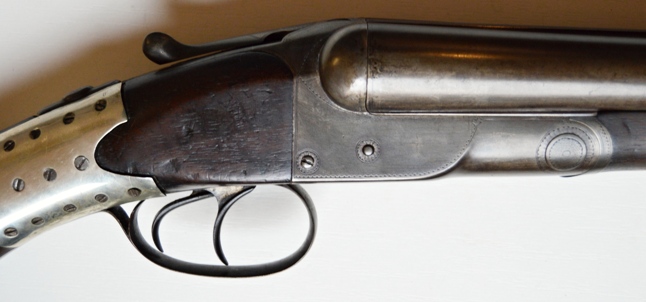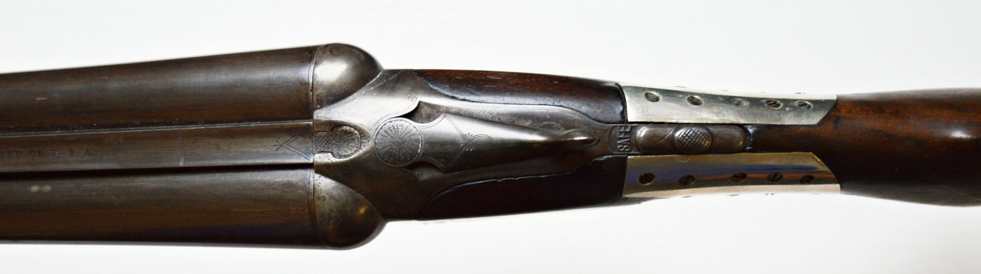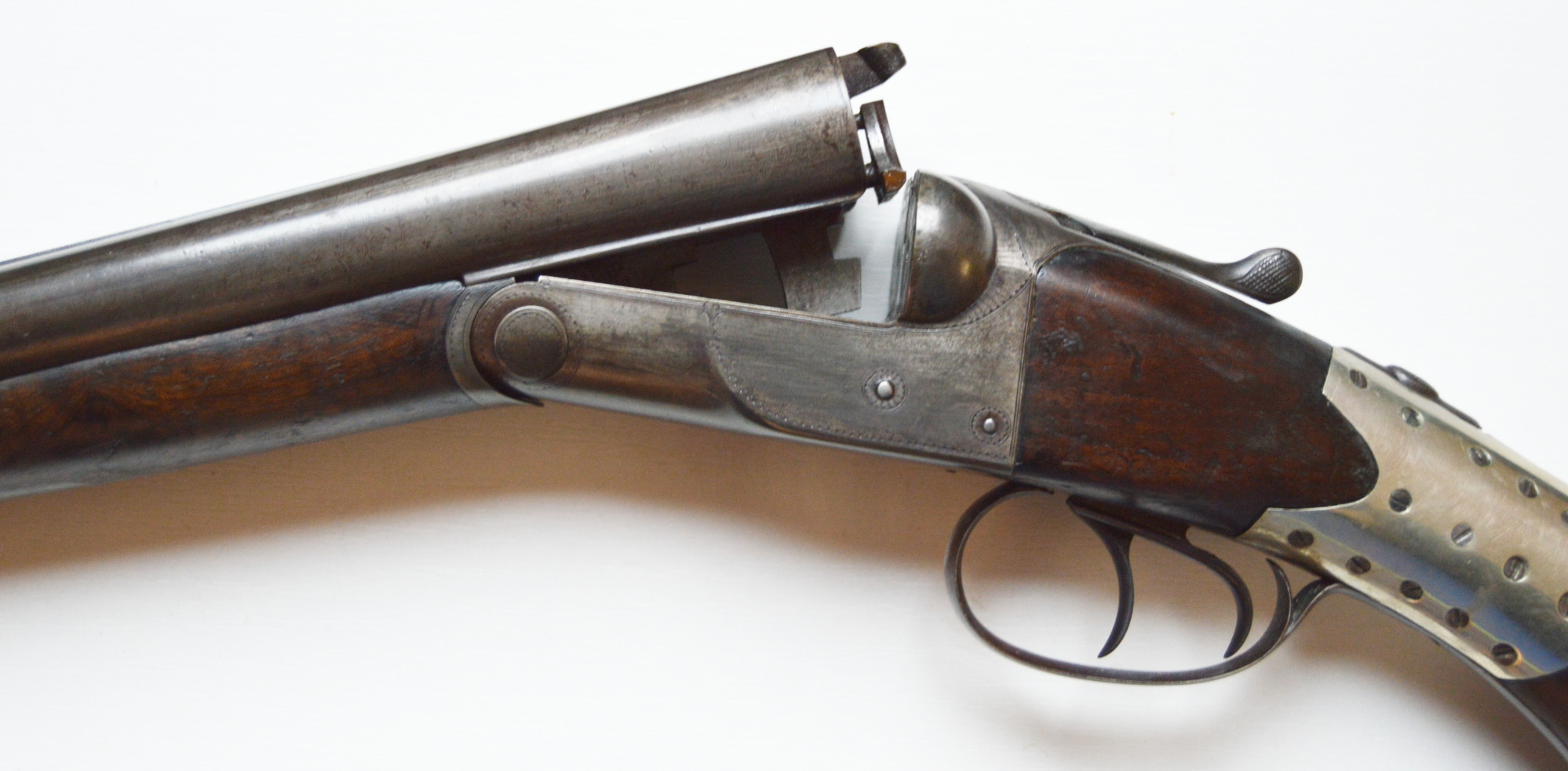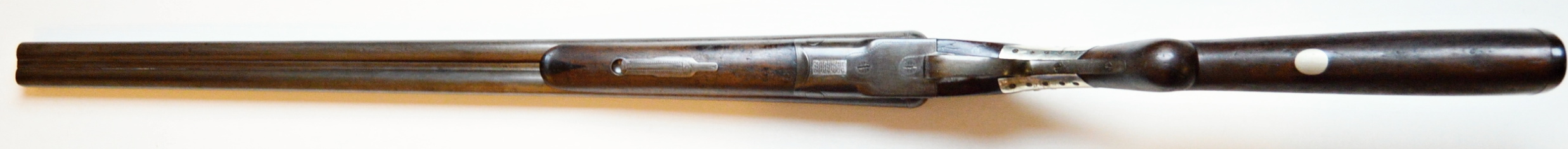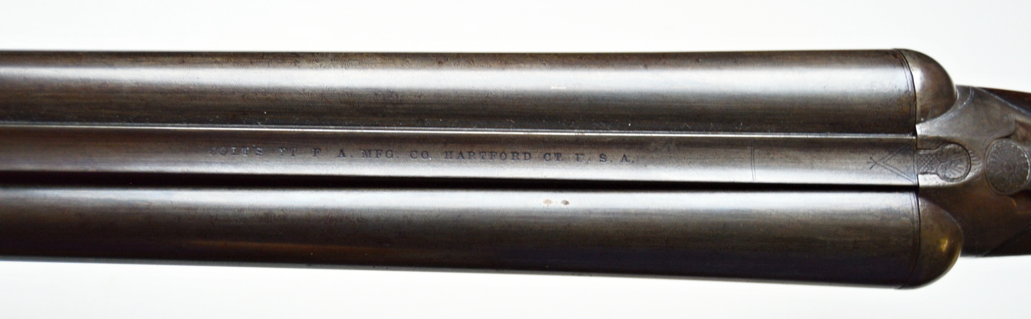 To nejlepší od Colta ! Velmi vzácná a ceněná Coltova broková hammerless, Model 1883, dvojka v kalibru 12. Hlaveň dlouhá 30″. Obě brokové hlavně, včetně komor jsou čisté. Mechanicky plně funkční. Uzamčení hlavní pevné. Jednotlivé části zbraně jsou sčíslované. Signatura na hlavni, damašek, patenty a rytiny na baskuli jsou zřetelně viditelné, 100% čitelné a čisté. Botka s logem hříběte je originál z tvrzené pryže Pažba originál, ale má opravu a zpevnění na pistolové rukojeti. Pojistka spouště, vyhazovač nábojnic, vše funkční. Zbraň se vyráběla v letech 1883 – 1895 a vyrobeno bylo pouze 7366 kusů. Tato má nízké výrobní číslo (2xx)
