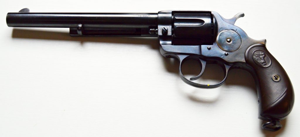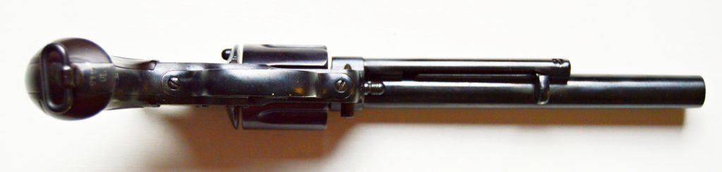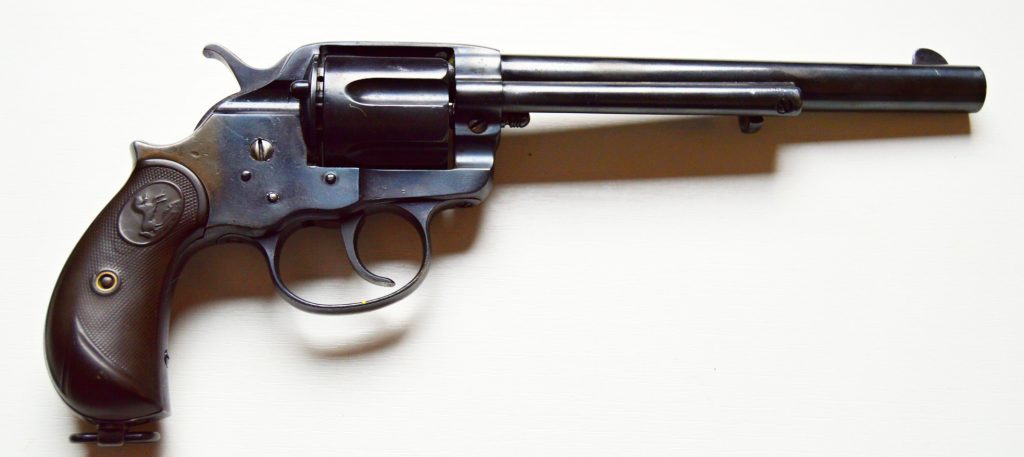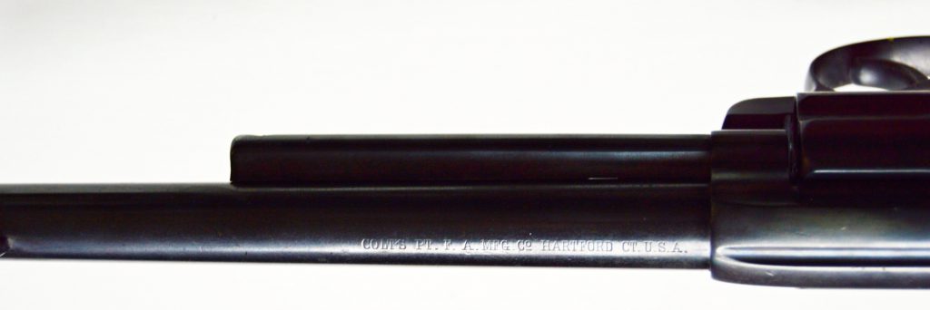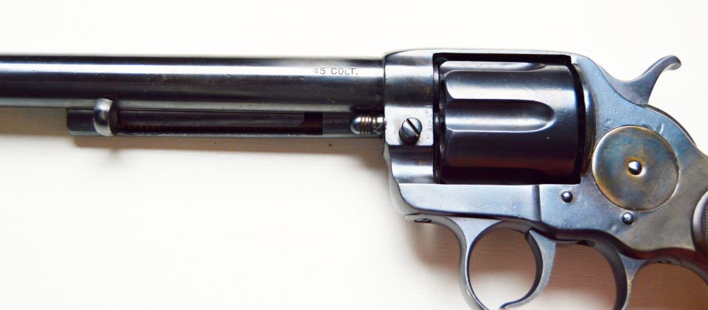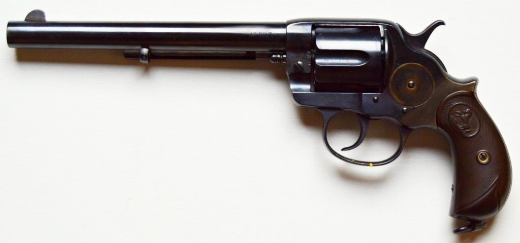 Colt model 1878 v kalibru 45. Revolver má atraktivní 7 a 1/2″ dlouhou hlaveň, drážky v hlavni ostré, lesklé a hluboké. Zbraň byla v minulosti restaurována. Originál střenky z tvrzené pryže s logem COLT, jsou velice zachovalé. Všechny signatury na zbrani, včetně výrobního čísla a označení kalibru jsou 100%. Válec spolehlivě aretuje, mechanicky i vizuálně je revolver pěkný. Kohout drží ve všech třech polohách. .