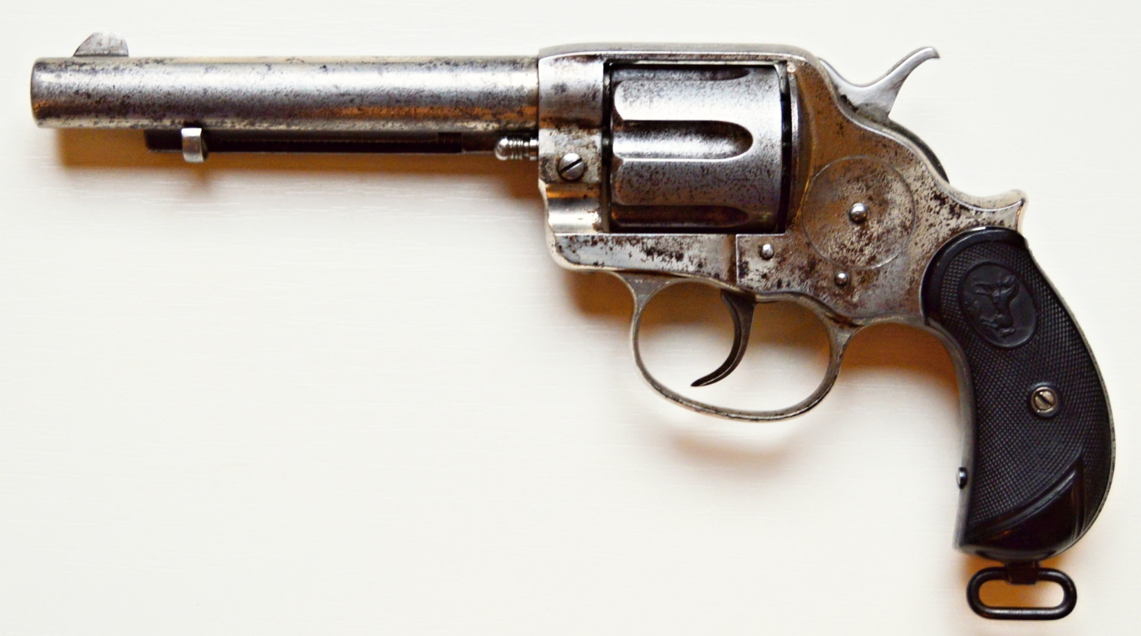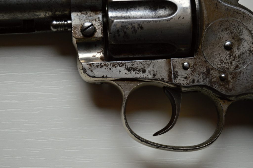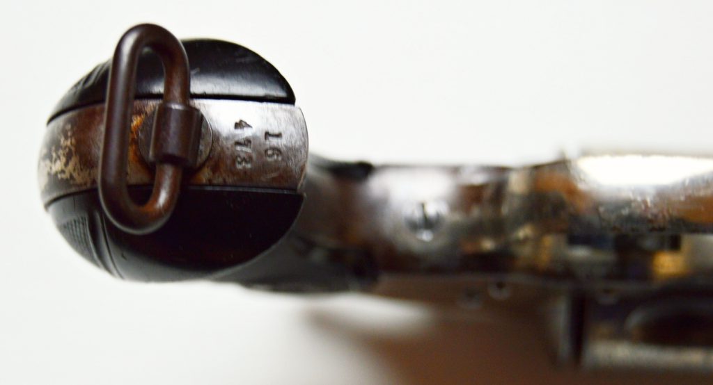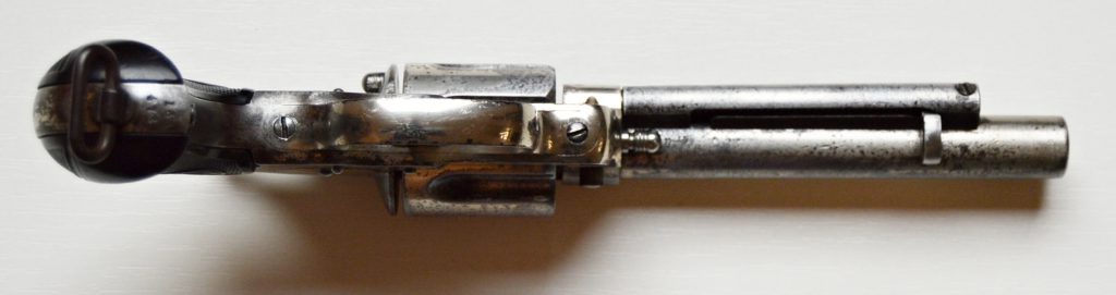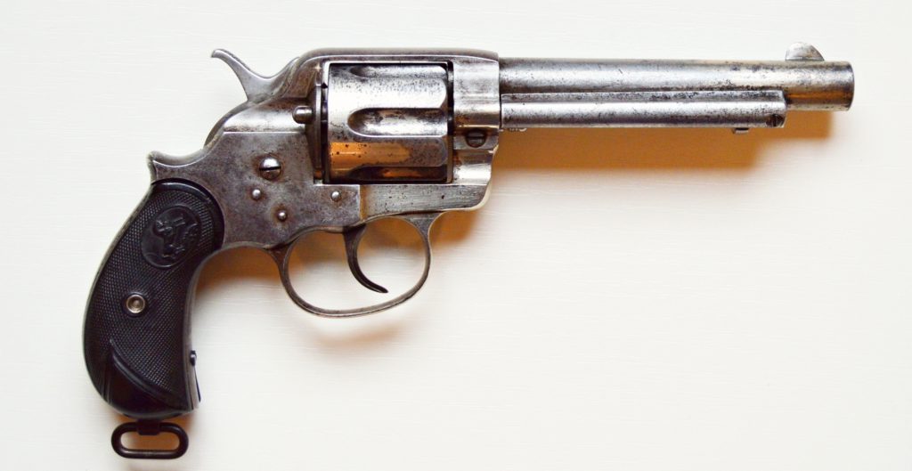 Colt model 1878 v kalibru 44-40. Revolver má atraktivní 5 a 1/2″ dlouhou hlaveň, drážky v hlavni ostré, lesklé a hluboké. Zbraň je v původním niklovaném stavu.. Originál střenky z tvrzené pryže s logem COLT, jsou velice zachovalé. Všechny signatury na zbrani, včetně výrobního čísla a označení kalibru jsou 100%. Válec spolehlivě aretuje, mechanicky i vizuálně je revolver pěkný. Kohout drží ve všech třech polohách. .