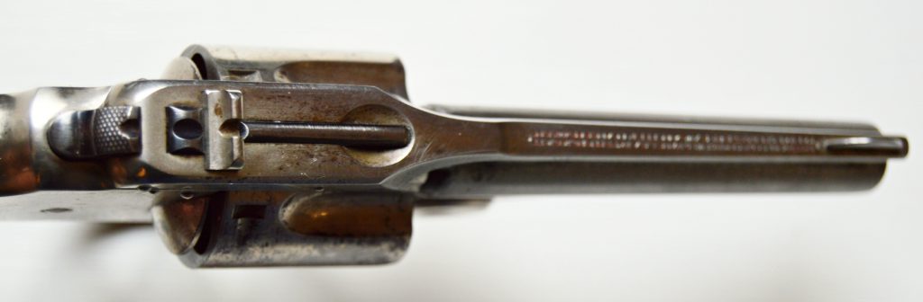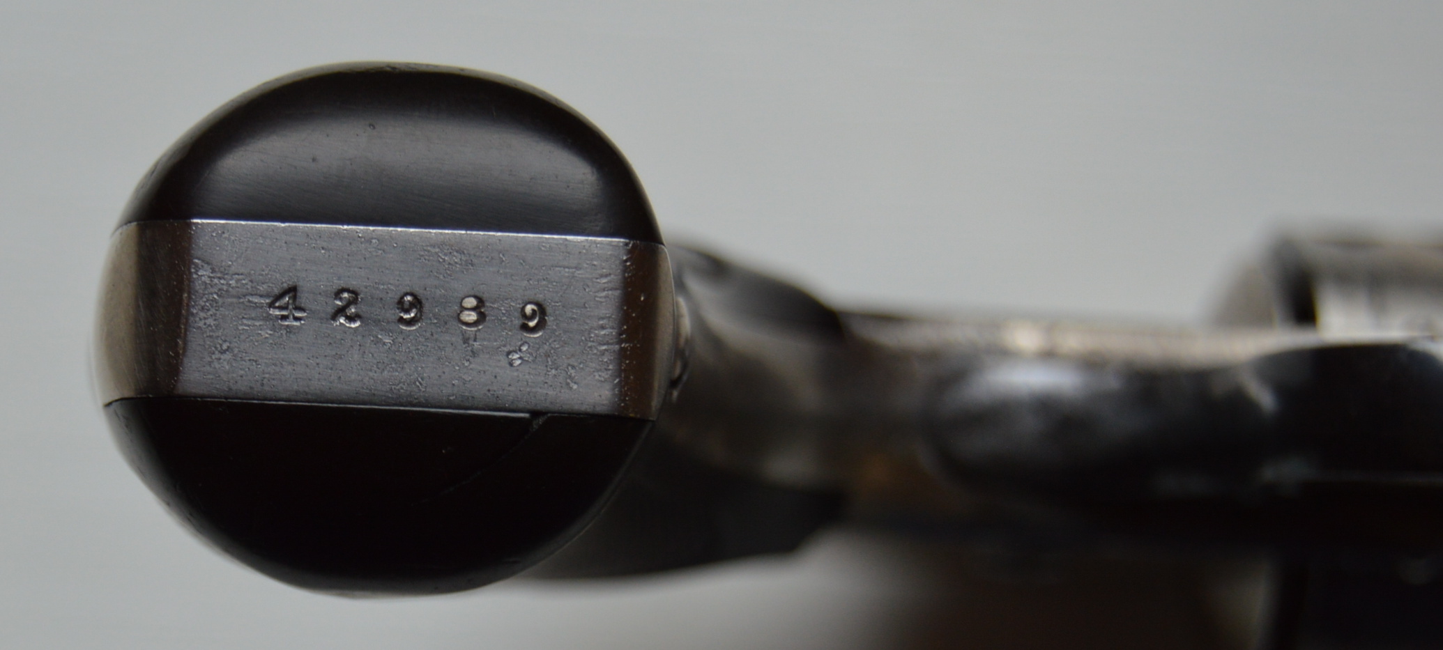 Revolver s dlaňovou pojistkou v pěkném stavu. Drážky jsou 80/100, mechanicky funkční, signatury kompletní. Nickel se částečně dochoval. Vše je patrné z fotek.