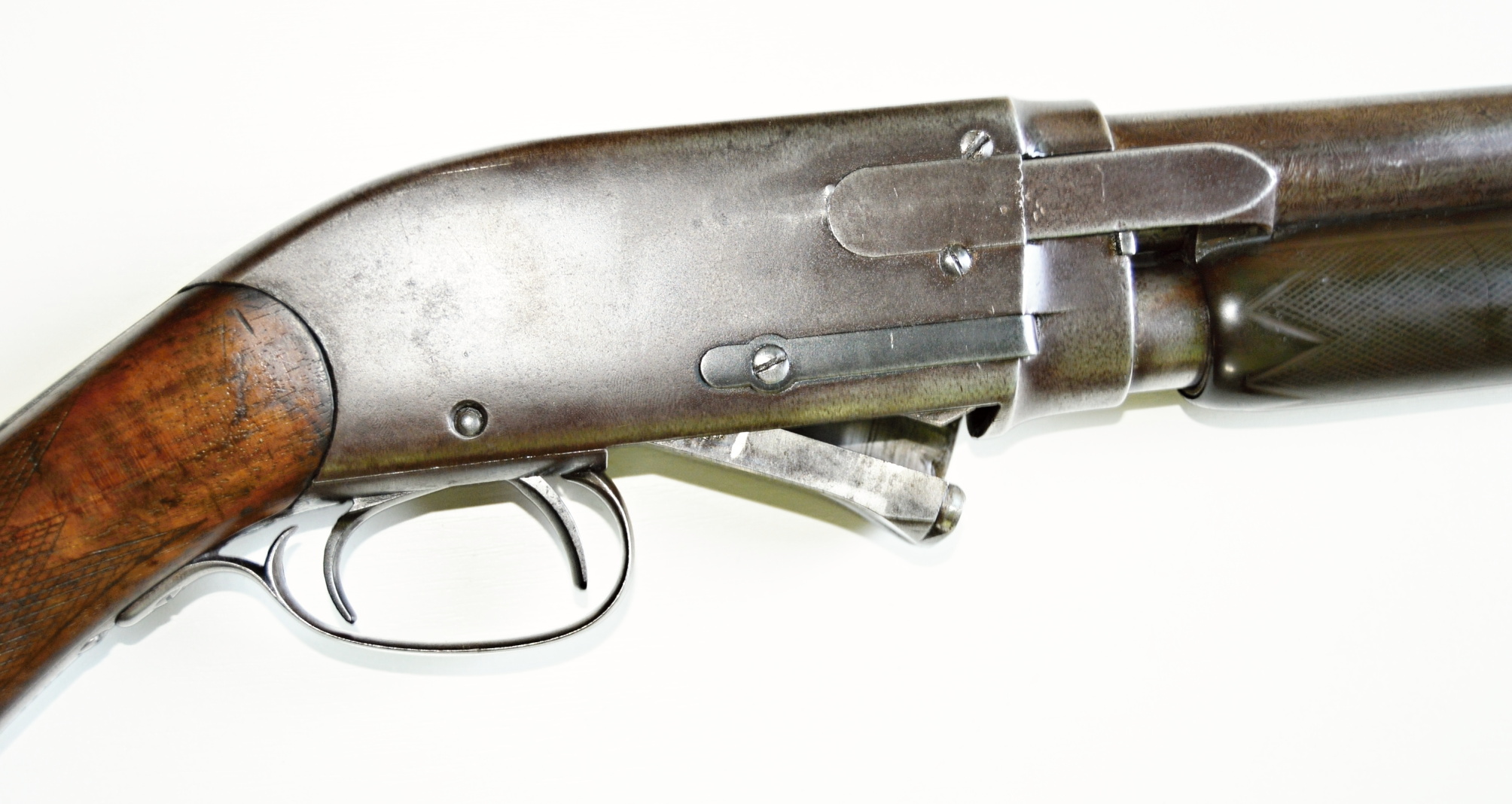 Legendární,vůbec první vyrobená US brokovnice s pohyblivým podpažbím Spencer v kalibru 12/65 (tato hylzna se prodává dodnes skoro v každém obchodě se střelivem). Tahle broková pumpa Spencer Arms Company se vyráběla pouze v letech 1882-1889 a v roce 1890 jí společnost Christian Miner Spencer prodal Frencesu Bannermanovi z New Yorku. Od roku 1890 jsou pak tyto brokovnice značené na boku rámu jménem Bannerman.& Sons. Nabízená brokovnice je původní Spencrovka, vyrobená v roce 1887. Jedná se tedy o první model americké pumpy-brokovnice s trubicovým zásobníkem na 5+1 nábojů s velice zajímavým mechanismem.
