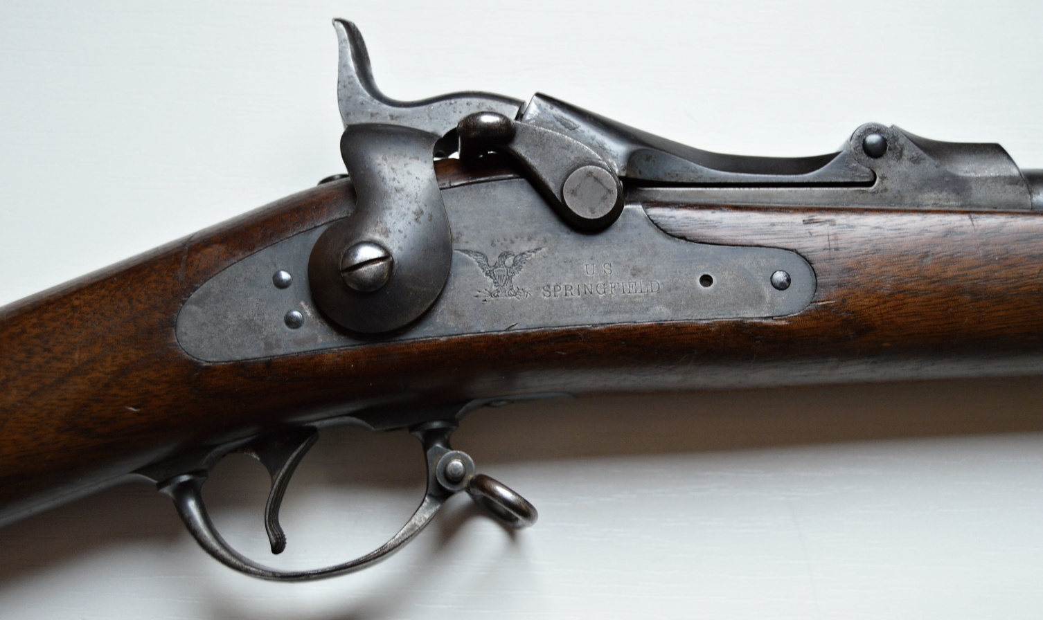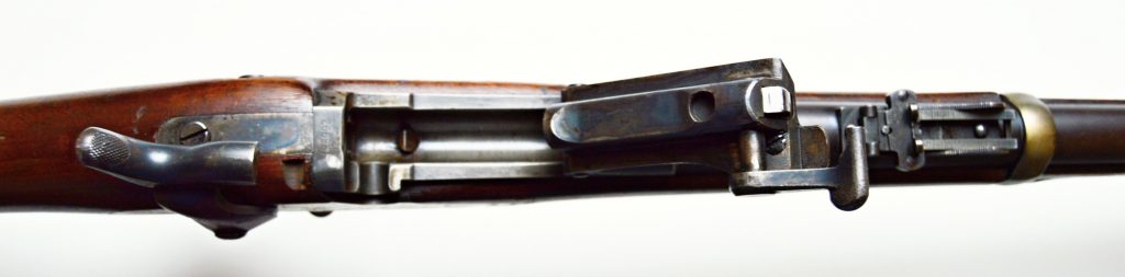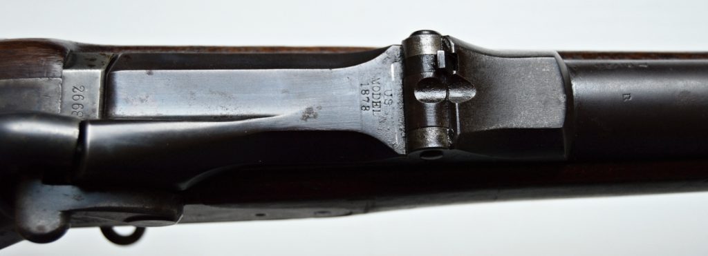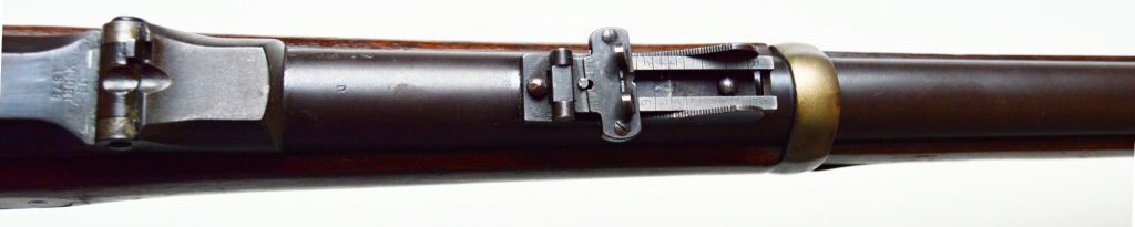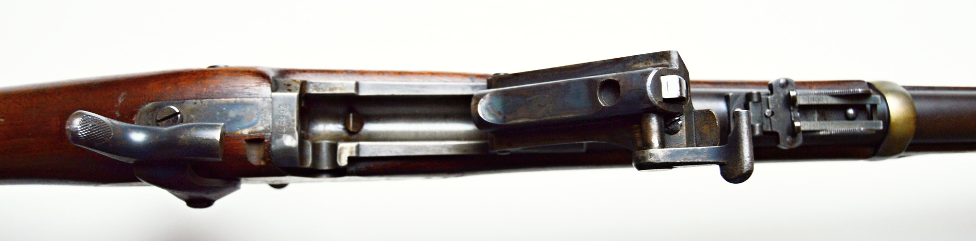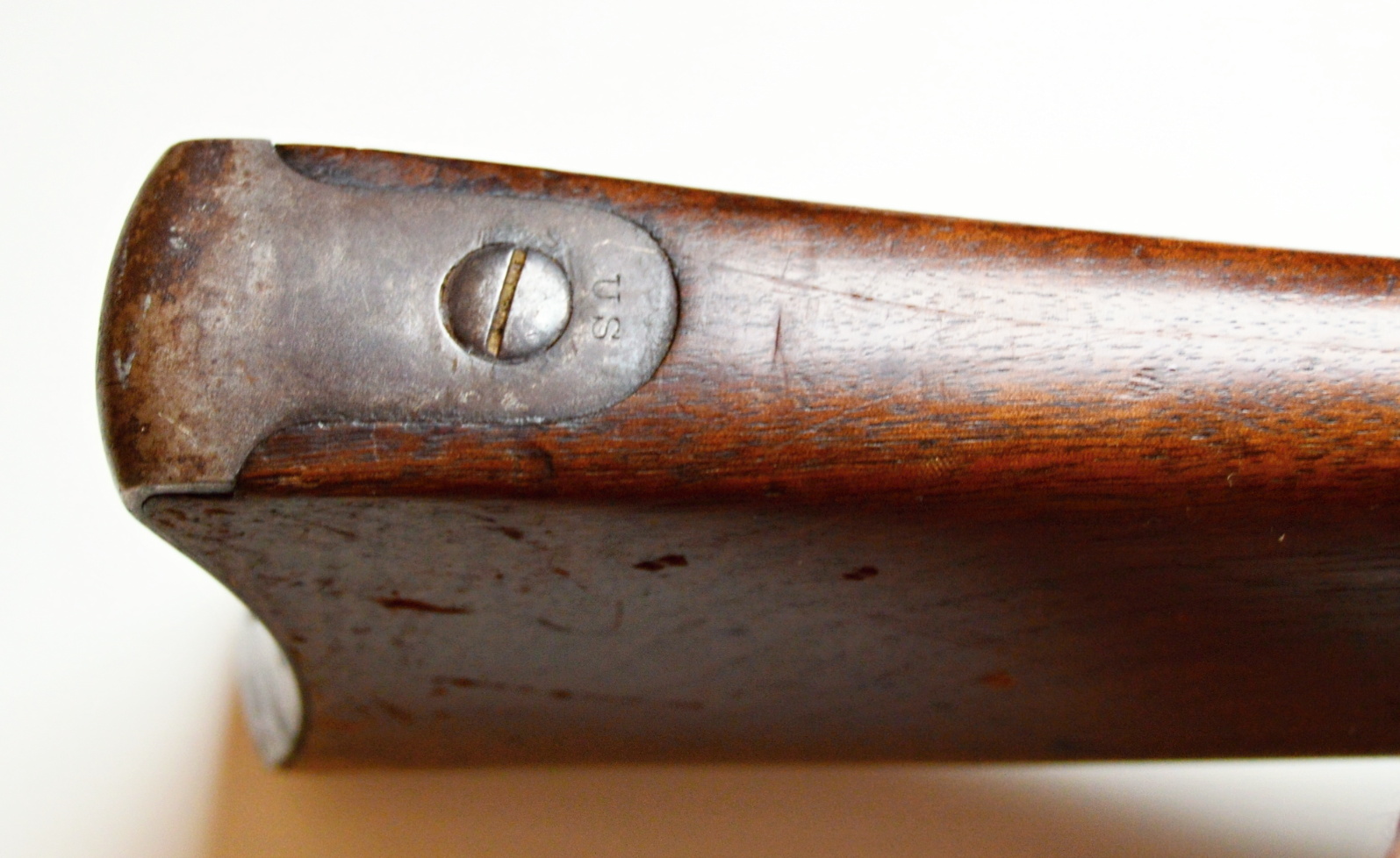 Springfield Trapdoor Rifle cal. 45-70. Jedna z nejoblíbenějších pěchotních US pušek. Hlaveň dlouhá 32″, signatury na zámkové desce a na závěru 100%. Na pažbě je patrná a dobře viditelná kartuš. Na závěru pušky je dobře zachovalé kalení. Vnitřek hlavně je ve velice dobrém a čistém stavu 80/100. Pažba je až na malé „oťuky“ ve vynikajícím stavu.