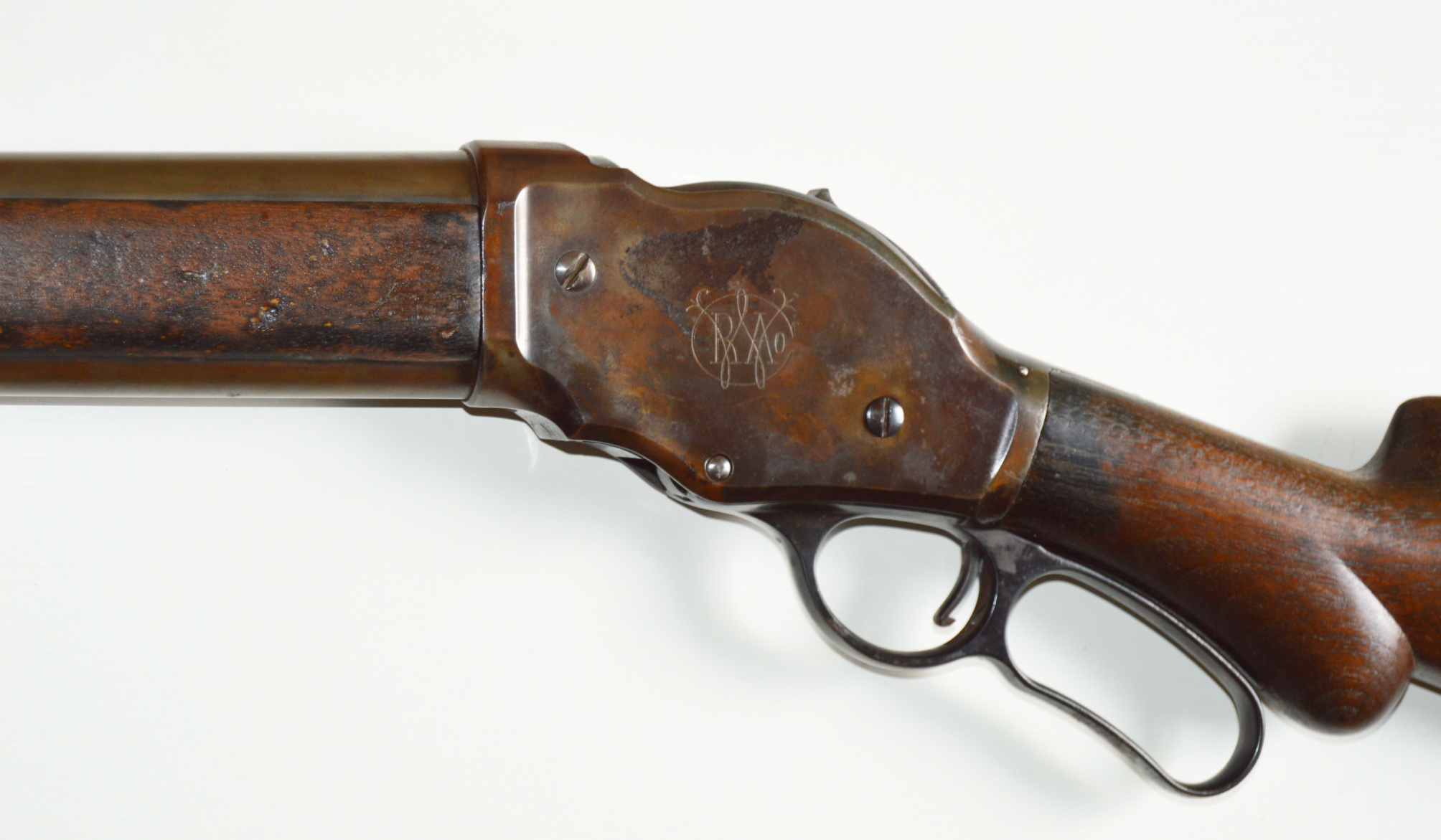 Winchester brokovnice model 1887 v calibru 12. Hlaveň dlouhá 30″, čistý vývrt, Pažba a podpažbí v nadstandardním stavu, pažba je zakončena nepoškozenou originál kovovou botkou W. Brokovnice je v plně funkčním stavu, výborná mechanika. Signatury všechny kompletní a čitelné, včetně loga Winchester na boku rámu. Brokovnice má zachovanou originální povrchovou úpravu mramorováním na rámu skoro 100% a brynýr na hlavni a trubicovém zásobníku je také neomšelý. Součátí prodeje je i nový kufr na uchování zbraně.